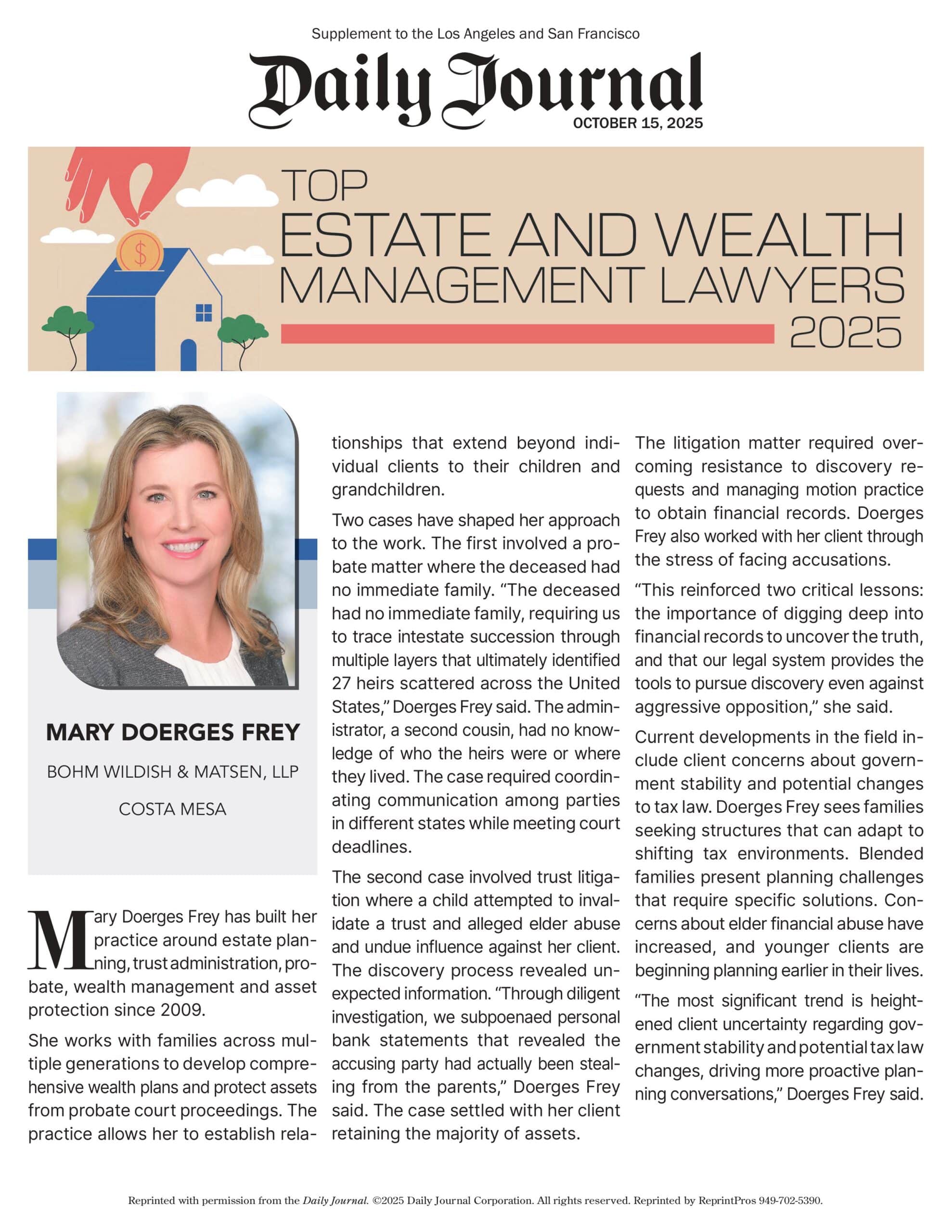 In many instances, our firm has represented the same clients since our formation more than ten years ago, providing them with services and representation as they have grown and prospered over the years. We are particularly proud of the fact that an overwhelming majority of our business is from returning clients and referrals.